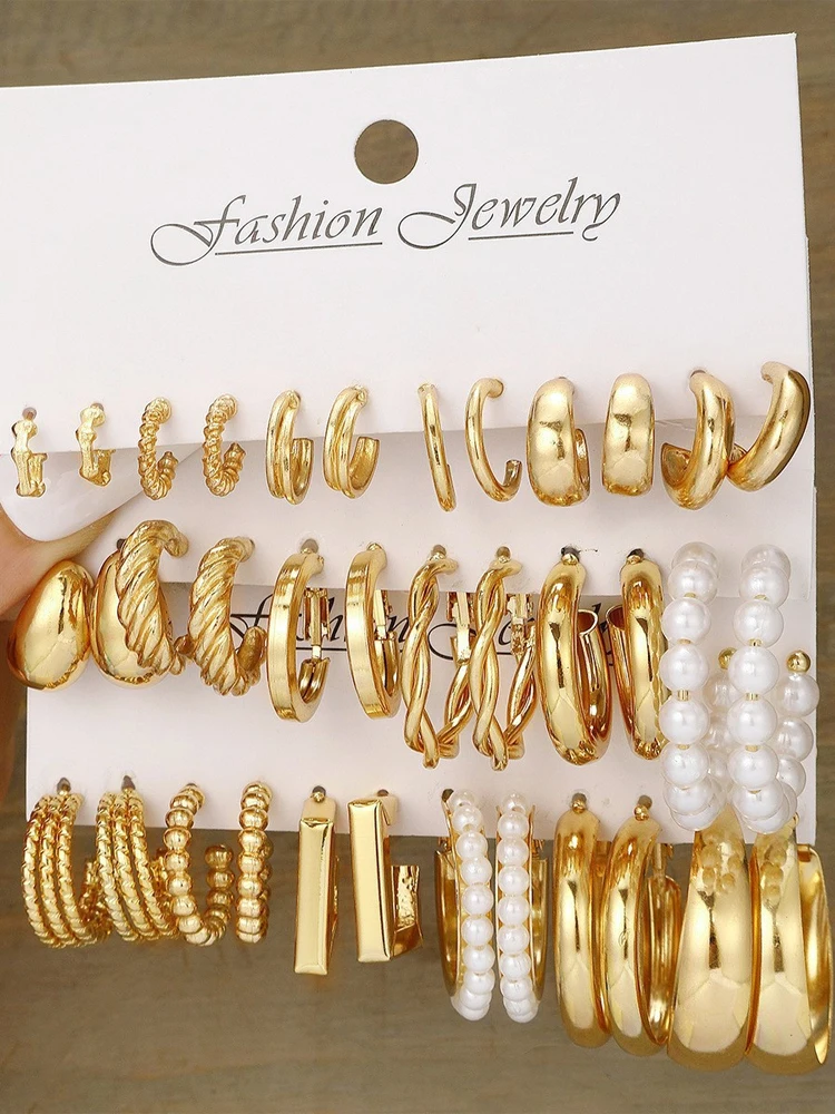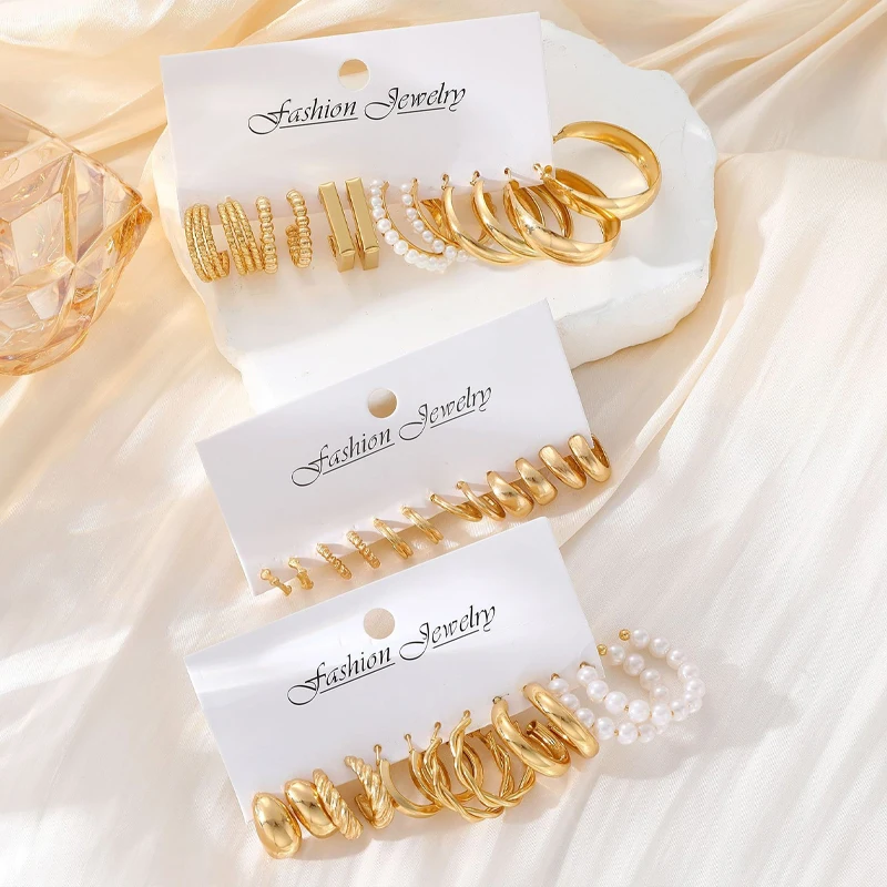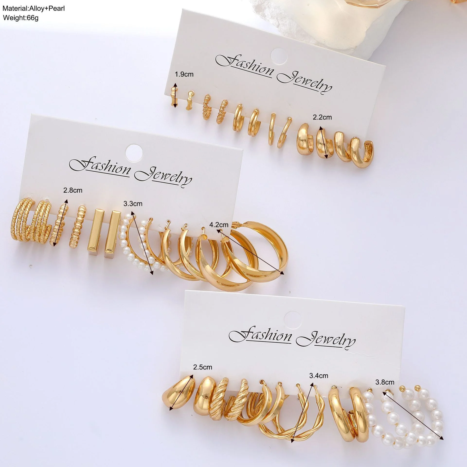 18 Pcs Fashion Creative Earring Set for Women Boho Gold Color Pearl Big Circular Hoop Earring Trendy Daily Life Jewelry Gifts