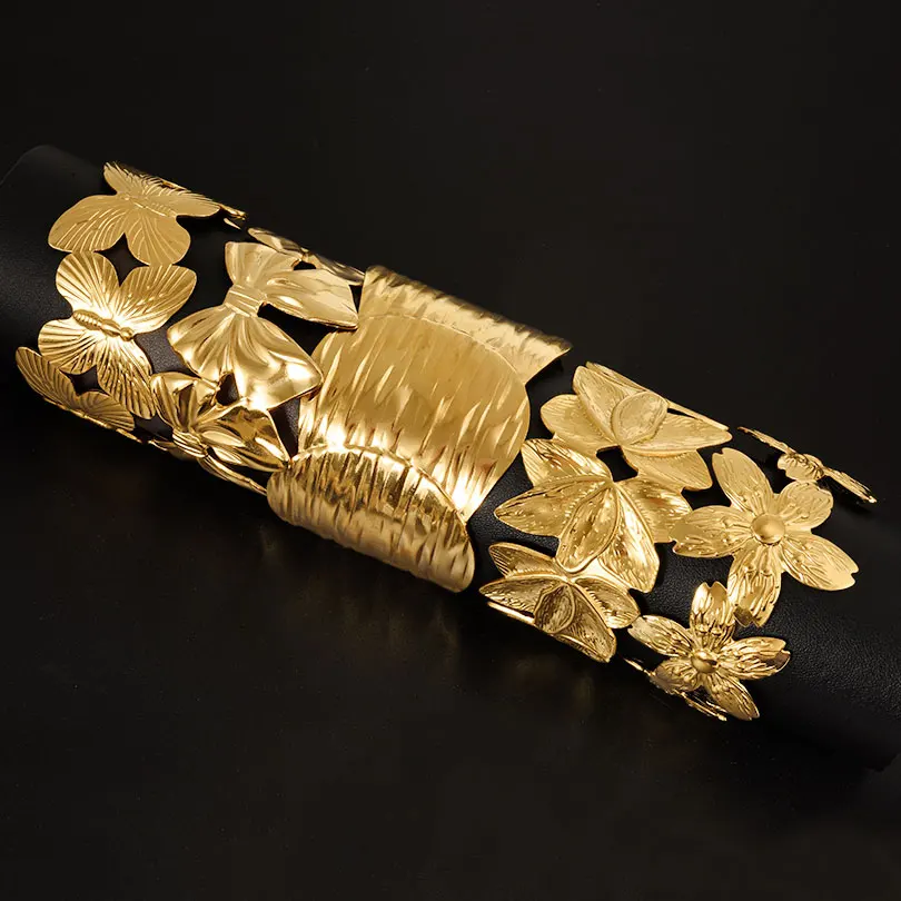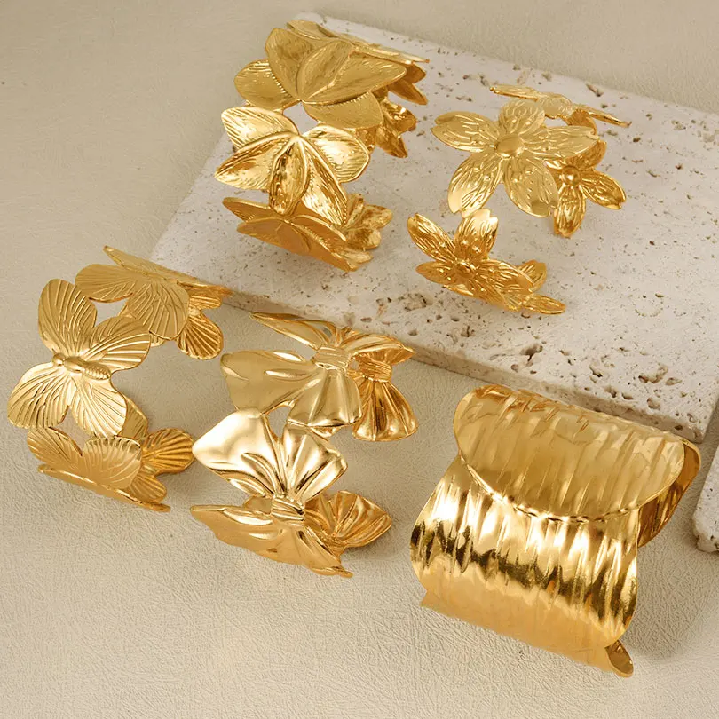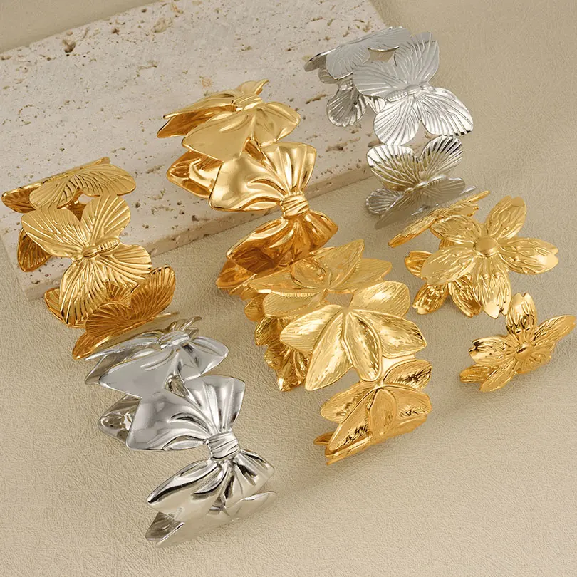 1Pc Stainless Steel Women Hammered Irregular Bowknot Flowers Chunky Open Bracelet Trendy Animal Butterfly Cuff Bangle Jewelry